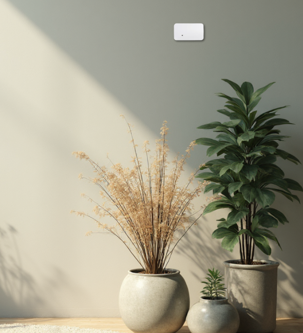It works alongside your existing sensors to provide more complete coverage, especially in areas where standard entry sensors might not be practical.