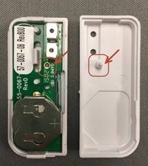 Para abrir el transmisor (la pieza más grande), hay una pestaña en la esquina de la parte superior e inferior del sensor. Haga palanca en una de esas pestañas para separar las dos mitades de la carcasa.